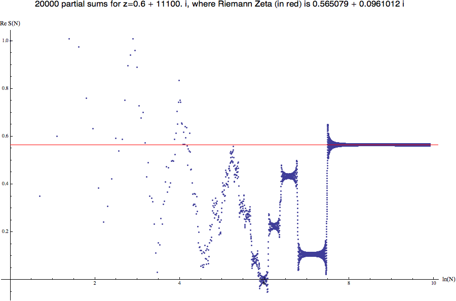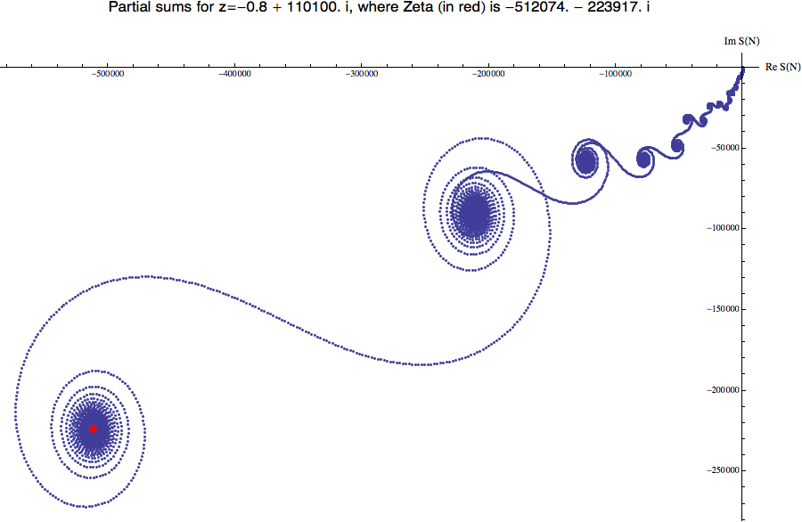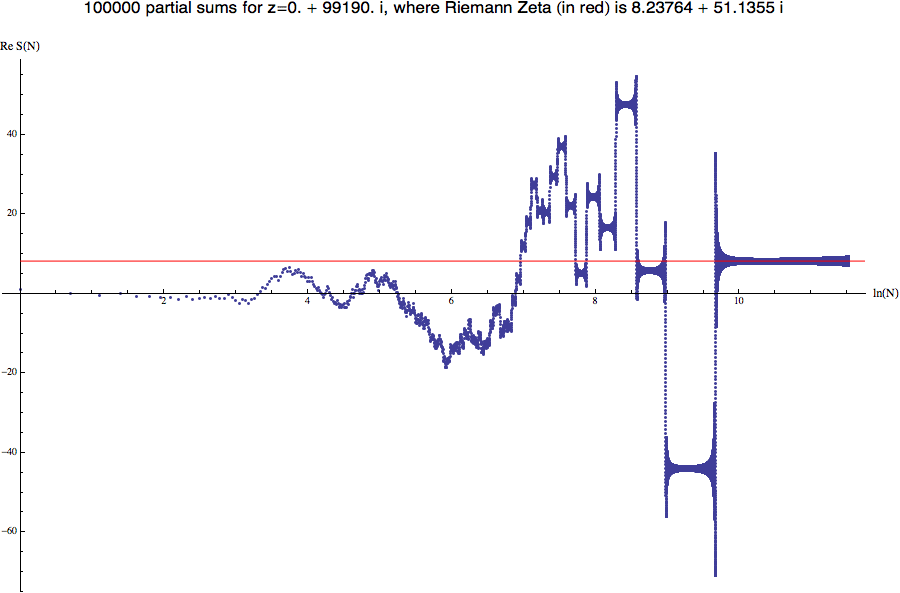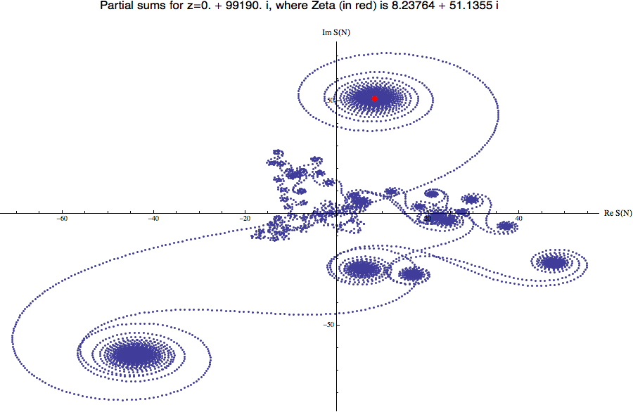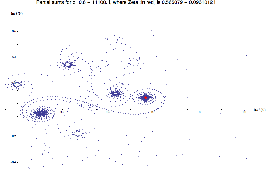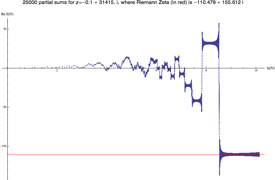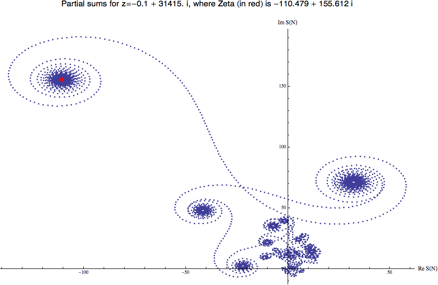 The plots show partial sums of the Riemann Zeta function for various values of z.